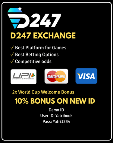 Experience the most trusted and reliable cricket betting platform with D247 EXCHANGE We offer the best odds, instant withdrawals, and 24/7 customer support.